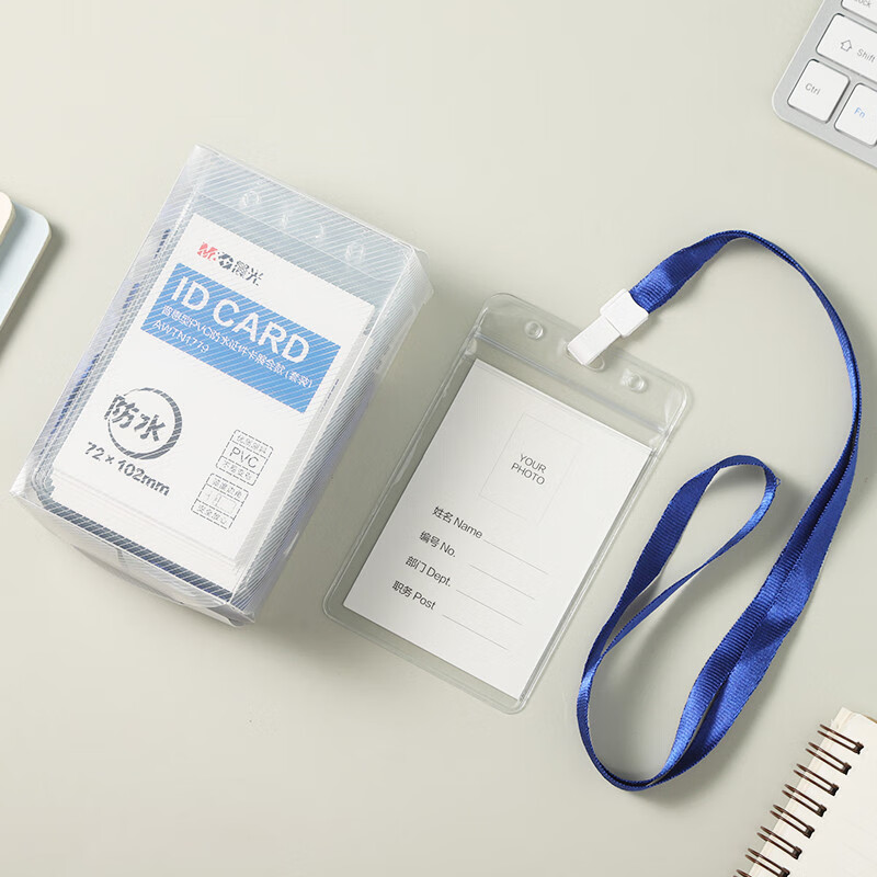 晨光(M&G)文具防水PVC展会证卡竖式 透明工作证员工牌胸卡出入证( 20个卡套+20根挂绳) 20套/盒AWTN1779 自营