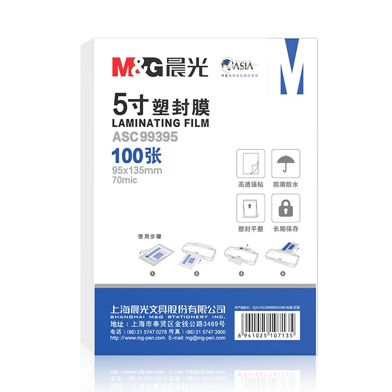 晨光(M&G) 5寸/100张 70mic透明高清塑封膜 95*135mm文件照片过塑膜 优质专用护卡膜 过塑机塑封机膜ASC99395 自营