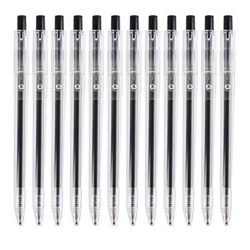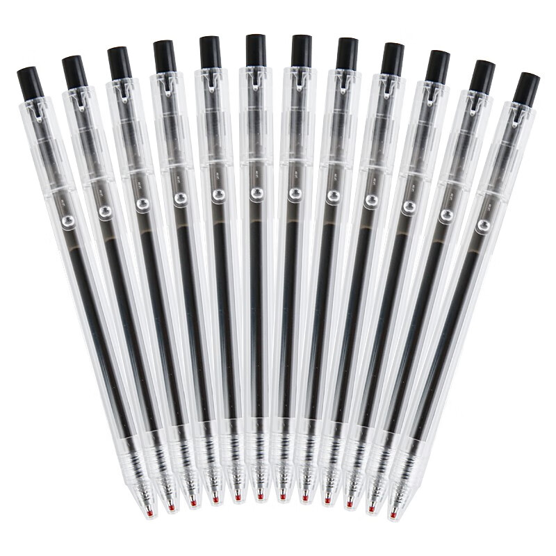 晨光(M&G)优品系列透明杆按动中性笔水性笔签字笔 黑色 AGP87902 子弹头按动款 0.5mm 12支装/盒 自营