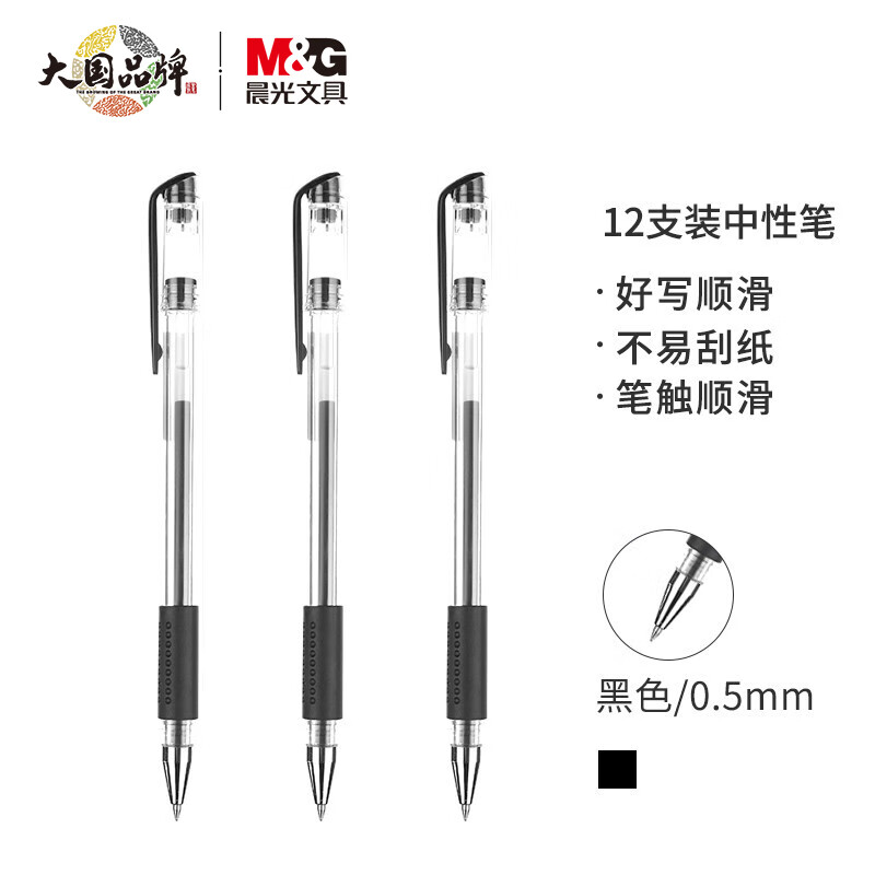 晨光(M&G)文具Q7/0.5mm黑色中性笔 子弹头签字笔 拔盖笔 办公水笔 12支/盒XGP30117 自营