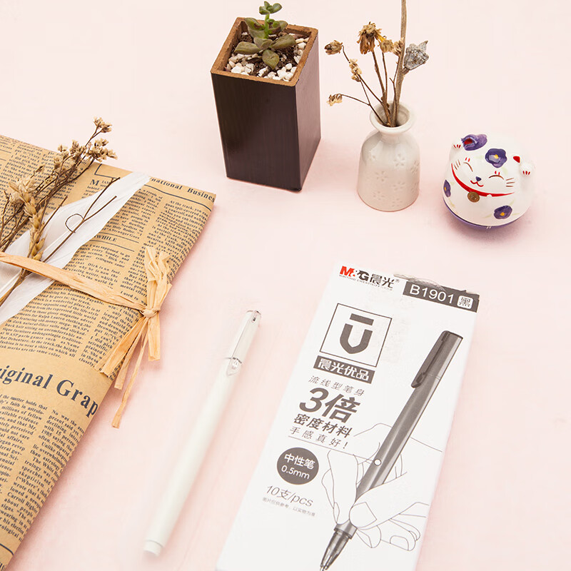 晨光(M&G)文具0.5mm黑色优品中性笔 高密度子弹头签字笔水笔 外壳颜色随机 10支/盒AGPB1901A 自营