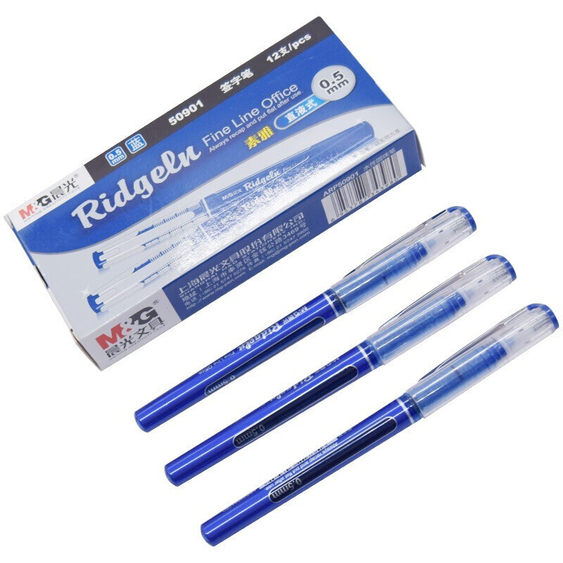 晨光(M&G)文具0.5mm蓝色中性笔 直液式全针管签字笔走珠笔中性笔办公会议水笔 12支装 ARP50901B 自营