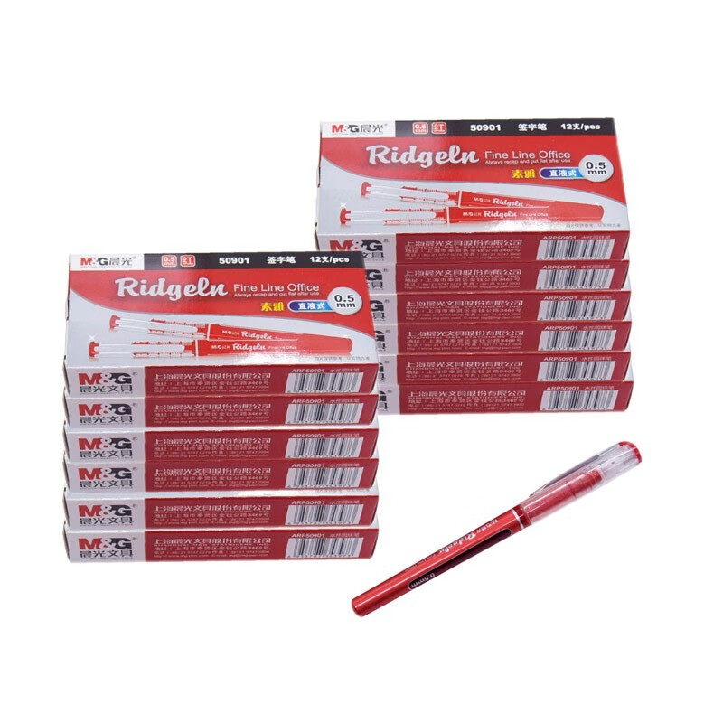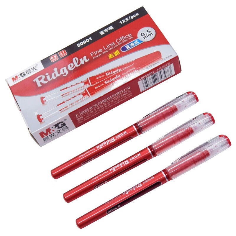 晨光(M&G)文具0.5mm红色中性笔 直液式全针管签字笔走珠笔中性笔办公会议水笔 12支装 ARP50901C 自营