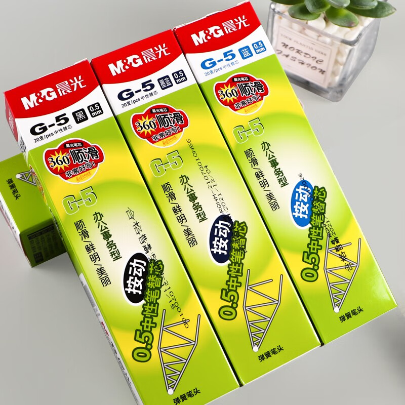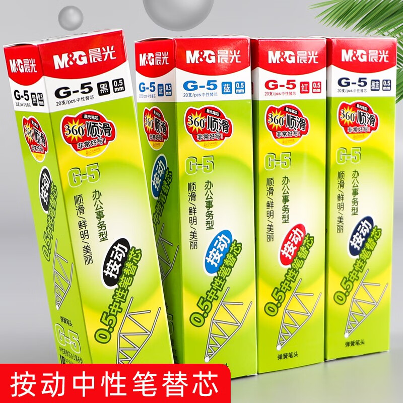 晨光(M&G) 笔芯中性笔芯签字笔替芯水笔芯按动子弹头G5适用K35\\\\1008\\\\Q7 0.5蓝【按动款】替芯20支 自营