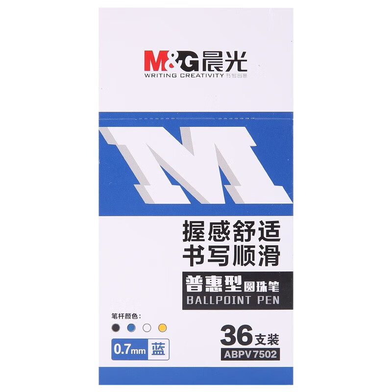 晨光(M&G)文具0.7mm蓝色经典按动圆珠笔 办公子弹头原子笔 普惠型中油笔 36支/盒ABPV7502 自营