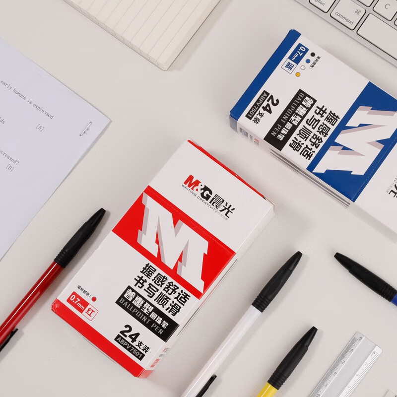 晨光(M&G)文具0.7mm红色经典按动圆珠笔 办公子弹头原子笔 普惠型中油笔 24支/盒ABPV7501 自营