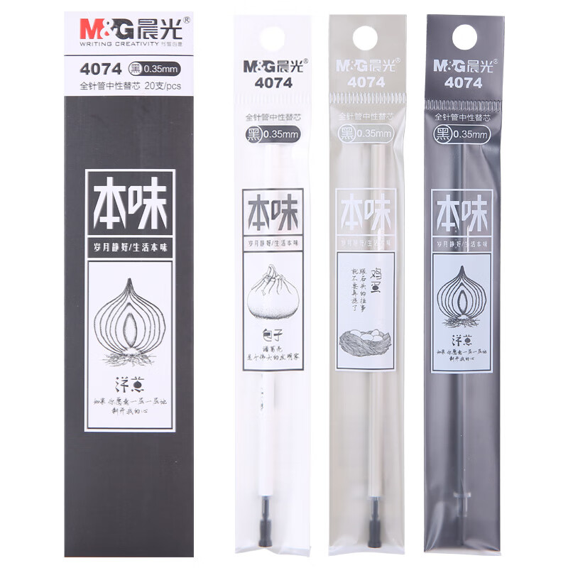 晨光(M&G)文具黑色0.35mm全针管中性笔芯 签字笔替芯 本味系列水笔芯 20支装4074 自营