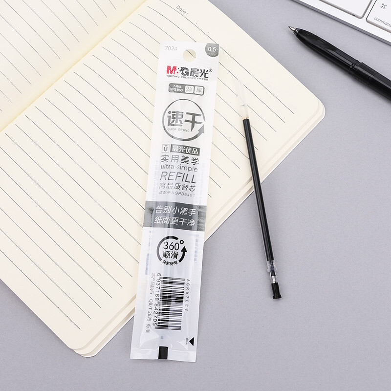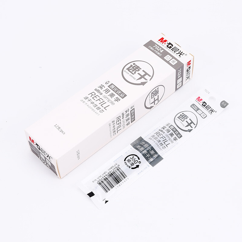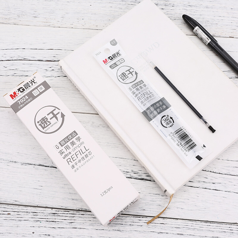 晨光(M&G)文具0.5mm黑色速干中性笔芯 时尚办公子弹头签字笔替芯 优品系列顺滑好写水笔芯 12支/盒7024 自营