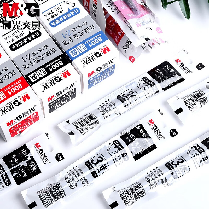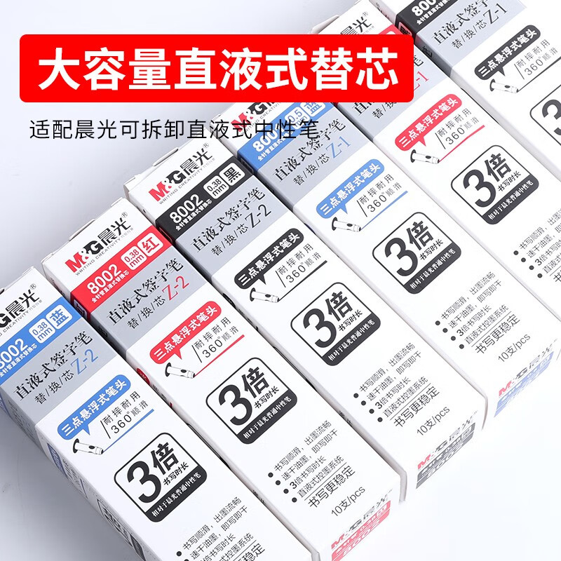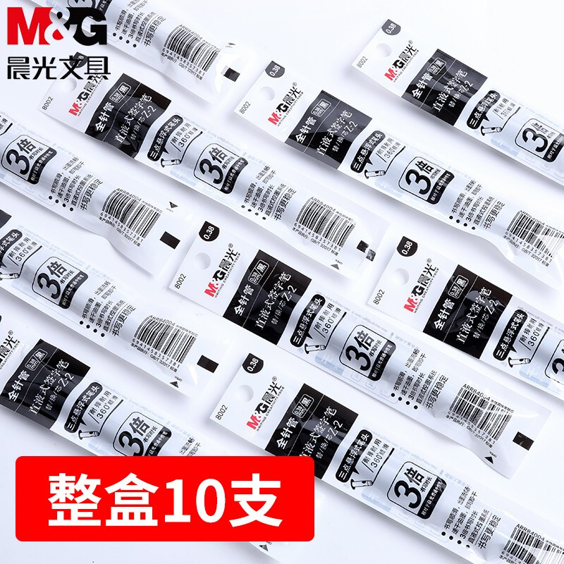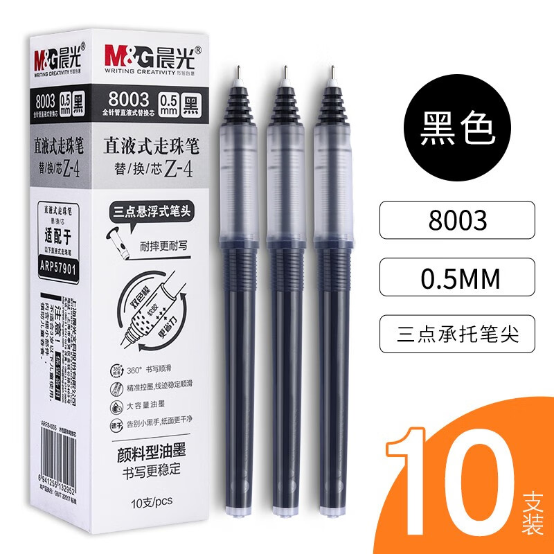 晨光(M&G)文具0.5mm黑色直液式替芯 走珠笔替换芯速干全针管签字笔 大容量水笔芯 10支/盒8003A 自营