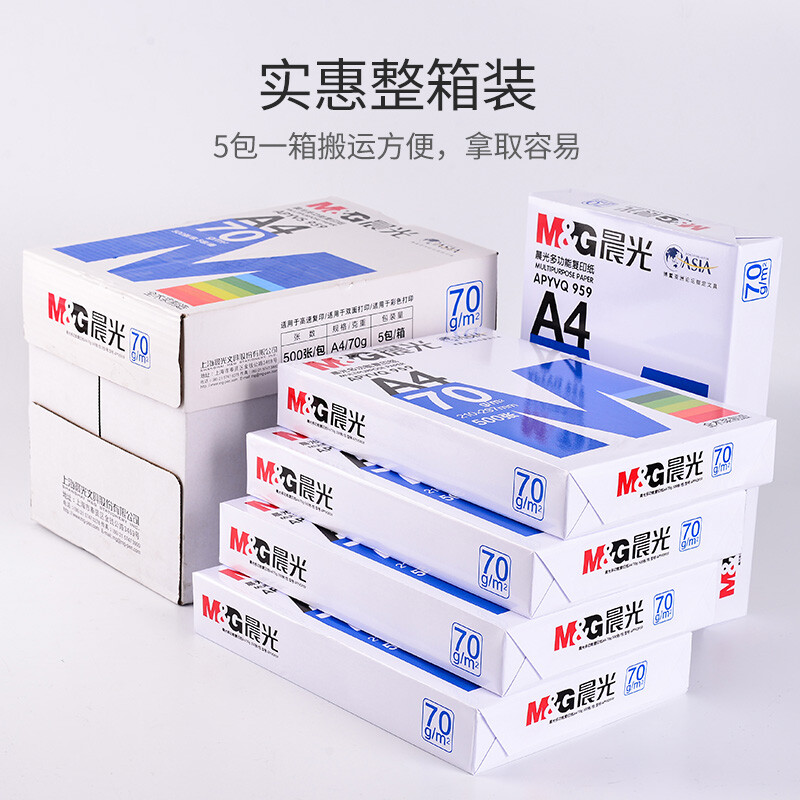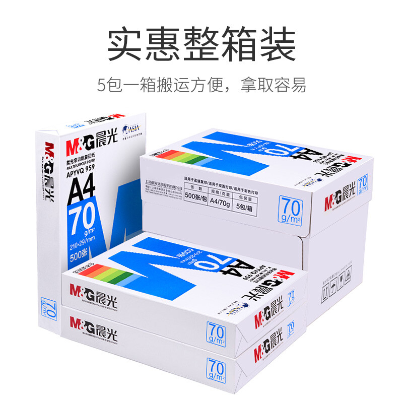 ¥2250.00晨光(M&G)绿晨光 A4 70g 多功能双面打印纸 高性价比复印纸 500张/包 8包/箱(整箱4000张) APYVQAF5