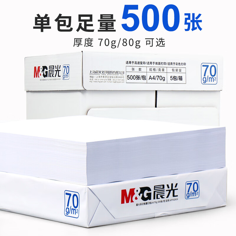 晨光 A4纸80g打印纸复印纸整箱打印纸白纸草稿纸 蓝晨光多功能复印纸80gA4-5包装 共2500张 APYVQ961A 自营