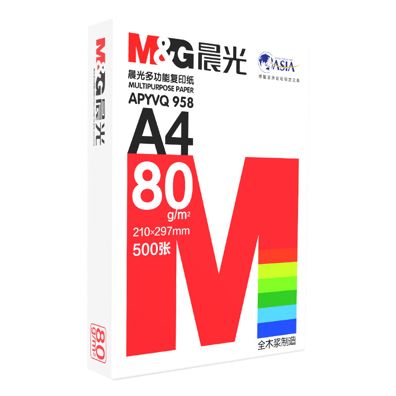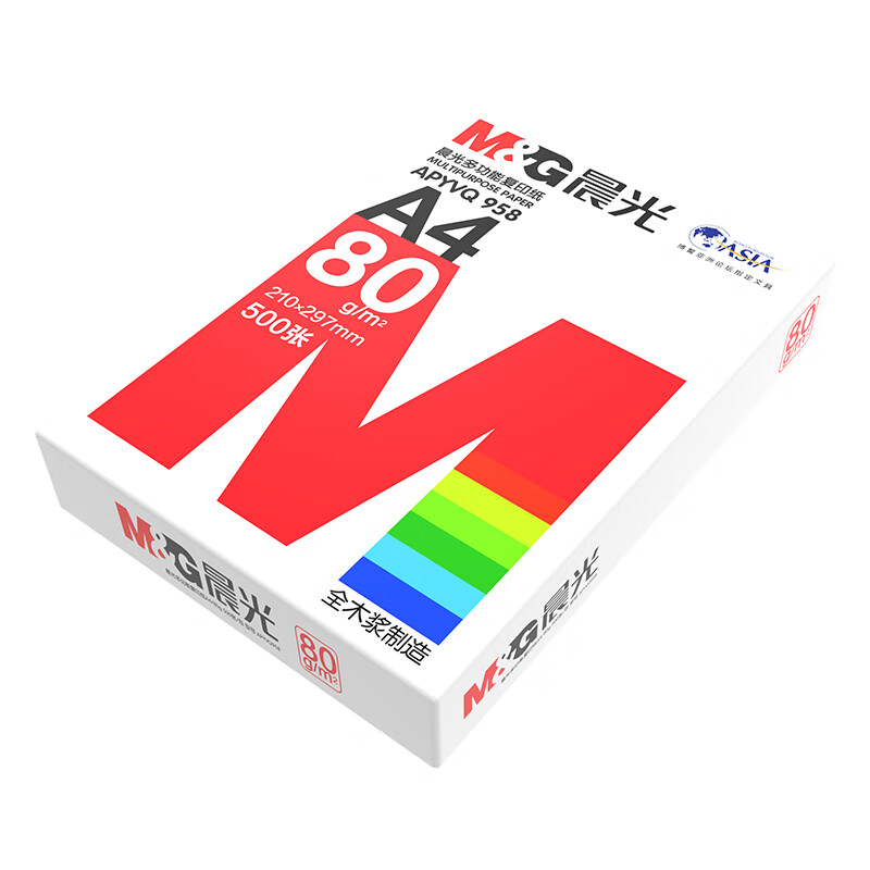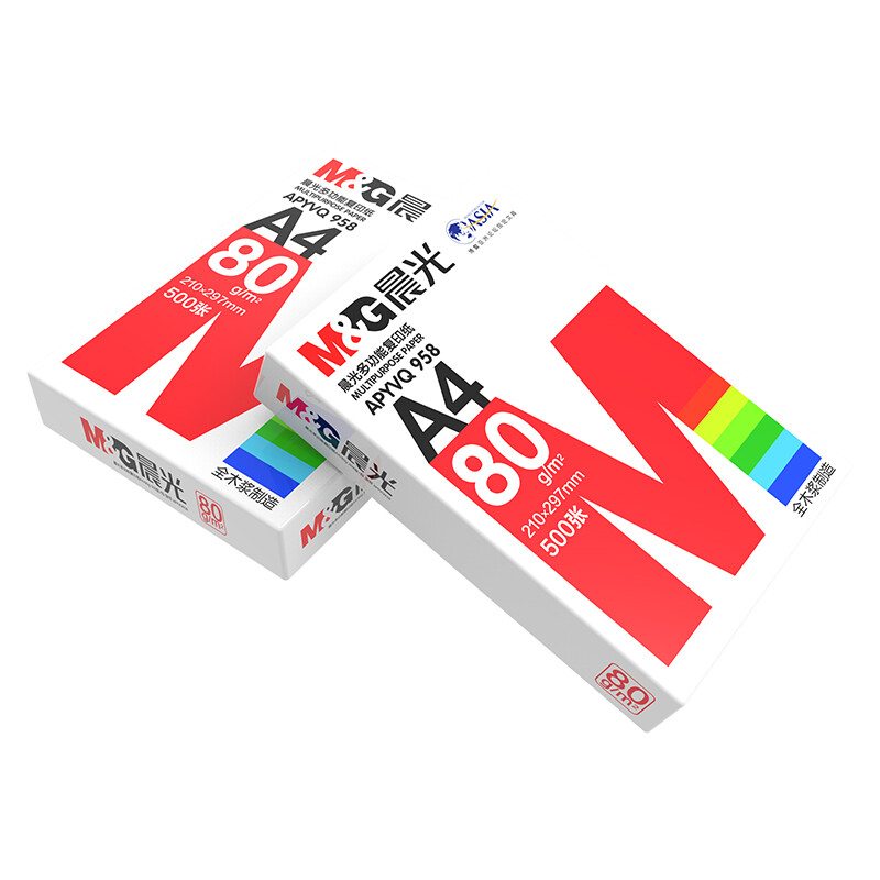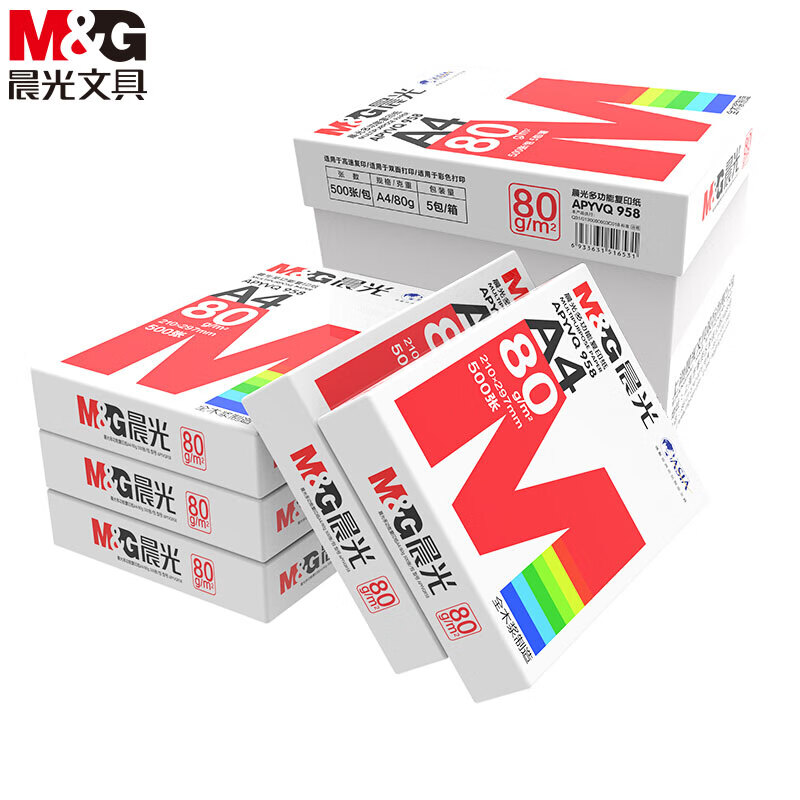晨光(M&G) 红晨光A4 80g 加厚双面打印纸 复印纸 500张/包 5包/箱(2500张) APYVQ958 自营