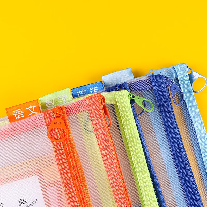 晨光(M&G)文具双层A4文件袋透明网格学科分类袋 学生试卷科目分类拉链袋文具袋 ADM929SR 【双层】语文科 1个 自营