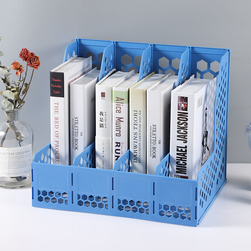 晨光文件架办公用品三联文件框多层学生书立加厚文件四联文件座简易桌上资料筐文件收纳置物书架笔筒文件篮 蓝色-三联文件框 ADMN4397 自营