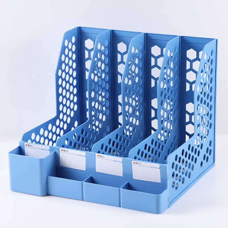 晨光文件架办公用品三联文件框多层学生书立加厚文件四联文件座简易桌上资料筐文件收纳置物书架笔筒文件篮 灰色-三联文件框 ADMN4397 自营