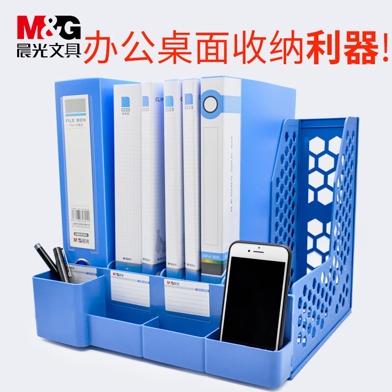 晨光文件架办公用品三联文件框多层学生书立加厚文件四联文件座简易桌上资料筐文件收纳置物书架笔筒文件篮 灰色-四联文件框 ADMN4398 自营