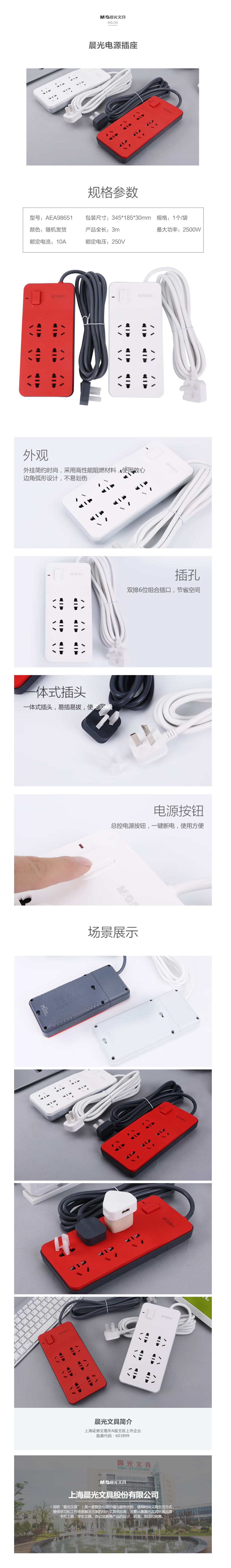 晨光延长线插座时尚款六位3米AEA98651 自营