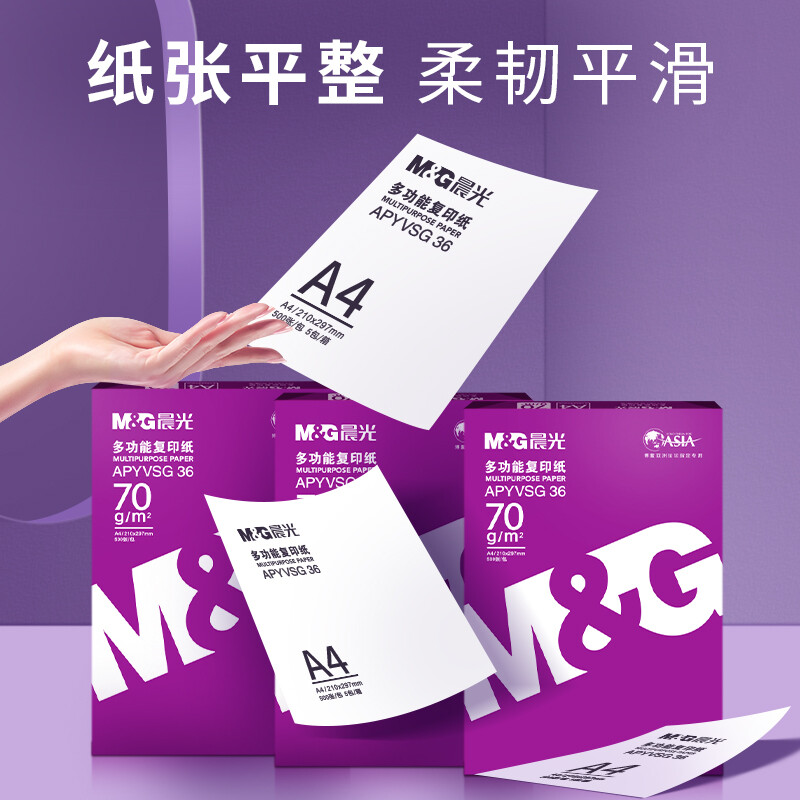 晨光(M&G) 紫晨光 A3 70g 多功能双面打印纸 热销款复印纸 500张/包 5包装(整箱2500张) APYVR59J 自营
