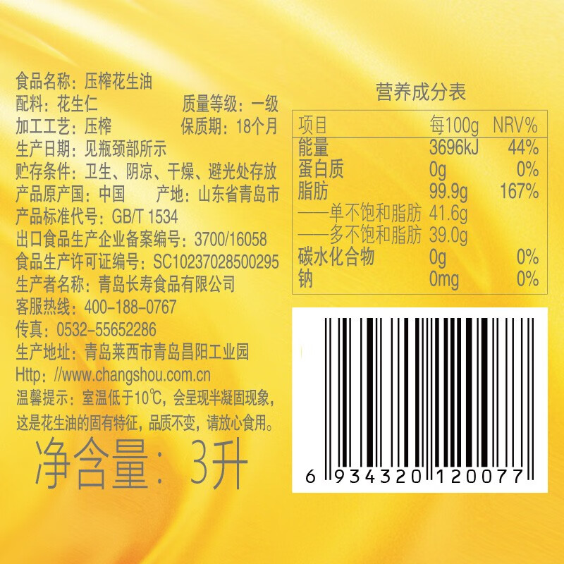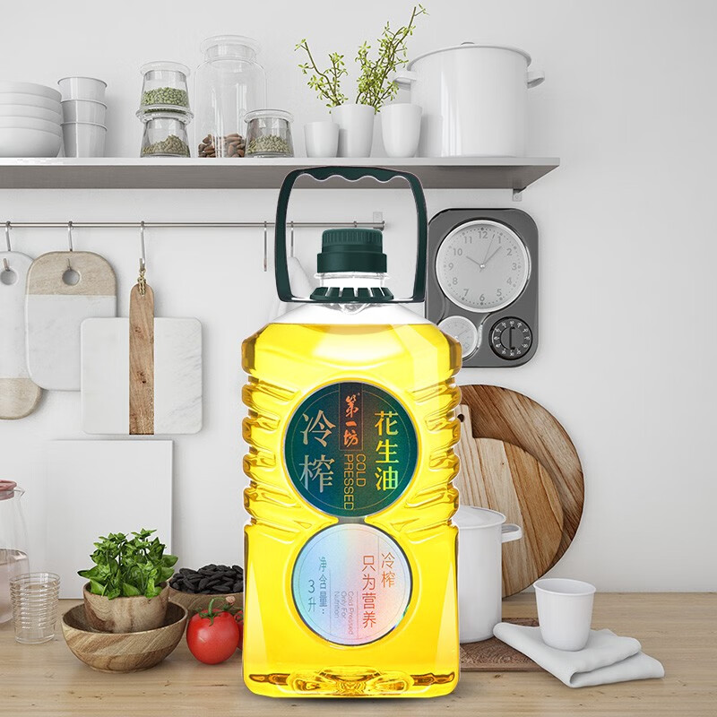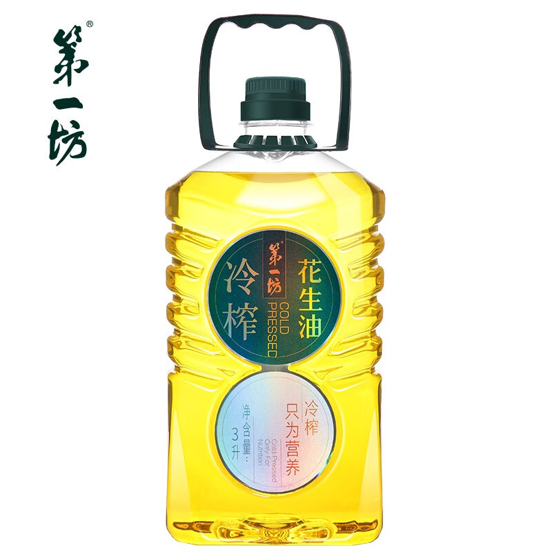 第一坊冷榨花生油3L 食用油 实惠桶装 粮油山东特产花生油 家庭低油烟 自营