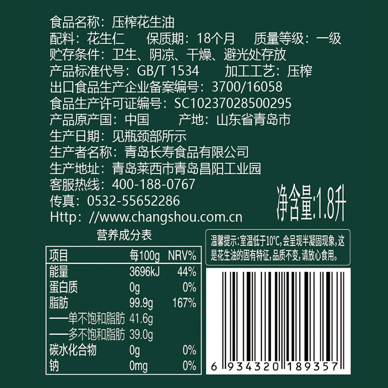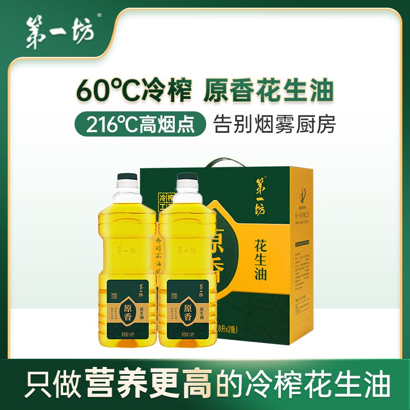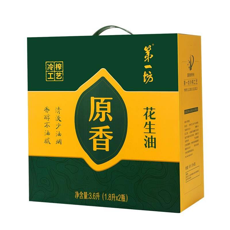 第一坊冷榨原香花生油1.8L*2礼盒装食用油 家庭装粮油 实惠礼盒厂家直发 自营