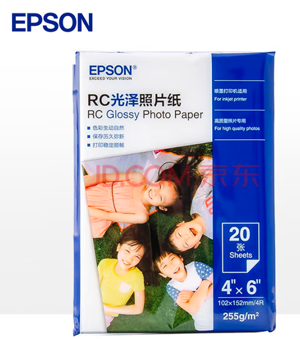 爱普生(EPSON) 原装相纸光泽打印机照片纸/生活照/相片纸 S450385【6寸 20张】、箱(10包)【光泽255g】 自营