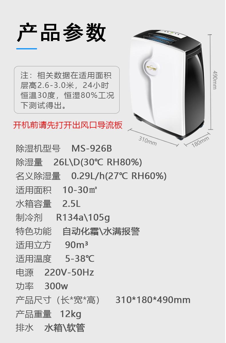 ¥2480.00湿美(MSSHIMEI)工业除湿机适用:100~200㎡地下室抽湿机大功率仓库除湿器MS-9138B