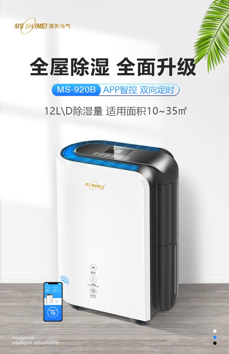 ¥2480.00湿美(MSSHIMEI)工业除湿机适用:100~200㎡地下室抽湿机大功率仓库除湿器MS-9138B
