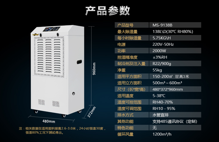 工业除湿机适用:100~200㎡地下室抽湿机大功率仓库除湿器MS-9138B